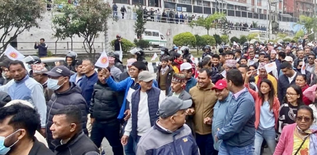 अध्यक्ष ओलीको रिहाईको माग गर्दै एमाले पदाधिकारी नै सडकमा